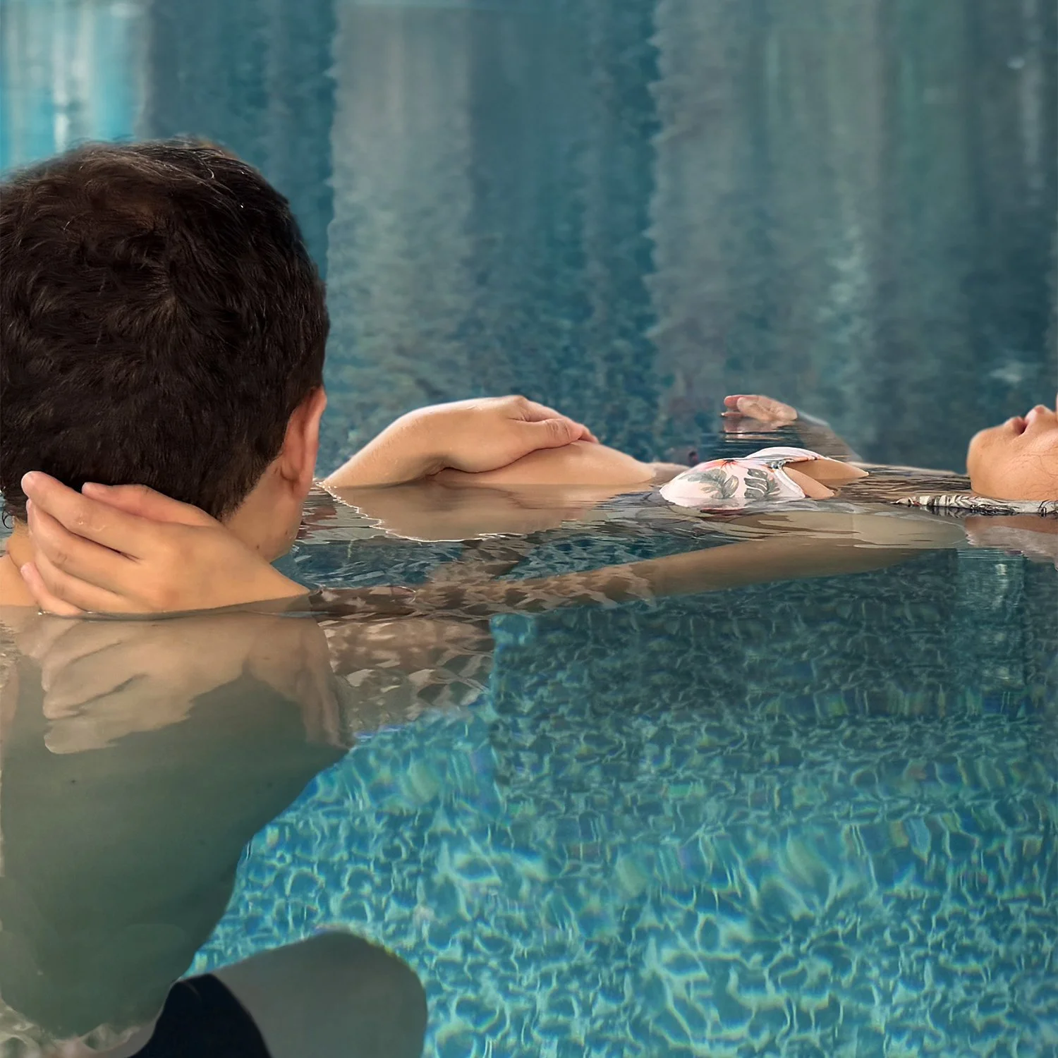 Partner Watsu® Sessions are shared aquatic experiences for two people — partners, friends, or family — held in warm water and centered on connection, attunement, and mutual support. In the one-practitioner format, the session weaves together individual receiving with guided partner-supported holds, inviting a felt sense of being held by the water and by one another. In the side-by-side format with two practitioners, each person receives Watsu® simultaneously, unfolding in parallel with moments of shared presence and quiet connection throughout. Both offerings center the relational field, offering two distinct pathways into shared presence, depending on how you’d like to experience the water together.